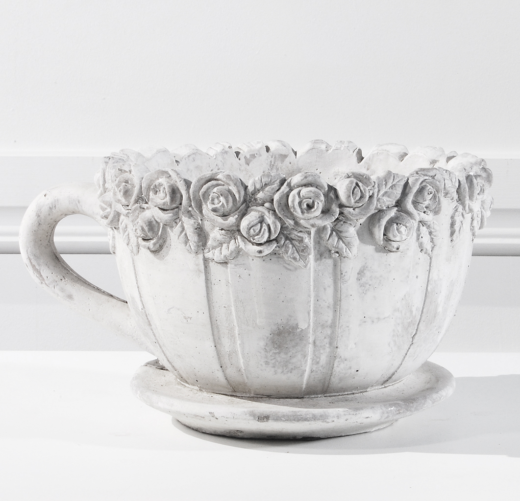 Vacker mug kruka i romantisk stil, ljus keramik